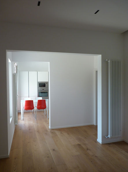 L'intervento si configura come ampliamento di una abitazione singola del secondo dopoguerra. La porzione ampliata dell'immobile utilizza un linguaggio architettonico totalmente diverso non confrontandosi con il fabbricato originario e ricorrendo a stilemi diversi quali il manto di copertura in lamiera zincata inclinata, le grandi aperture vetrate verso il giardino, gli sporti in facciata realizzati sui tre lati.